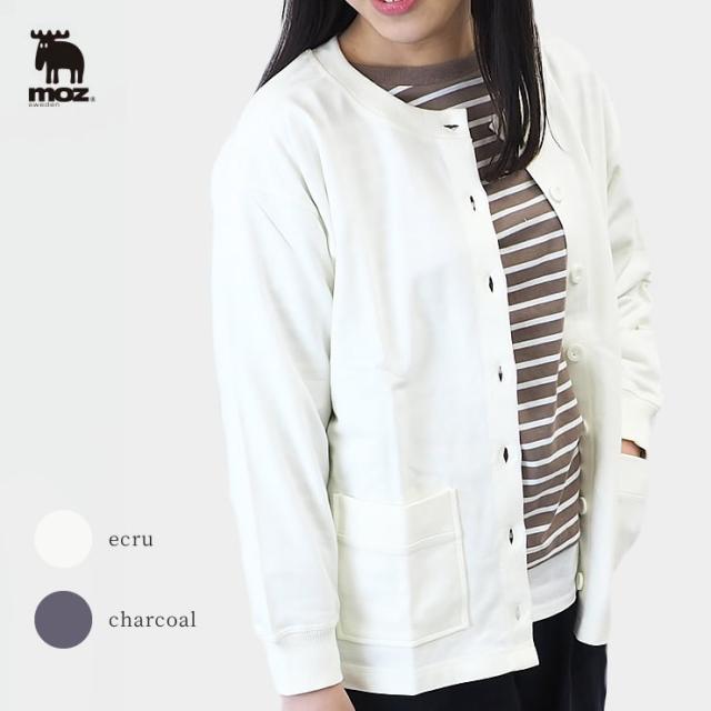moz sweden クルーネック カーディガン ( モズ 北欧 公式 レディース 長袖 綿100 コットン 大きいサイズ カットソー カーディガン ポケット エクリュ チャコール Mサイズ Lサイズ LLサイズ )