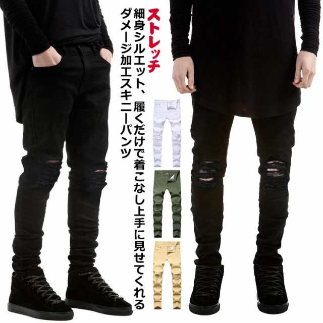 ジーパン ダメージ ダメージデニム スキニーデニム メンズ ジーンズ レディース スキニー ストレッチ デニム ダメージ ダメージジーンズ クラッシュデニム ジーンズ スキニージーンズ 春夏 大きいサイズ ユニセックス ペアルック 秋冬 ダメージ 美脚
