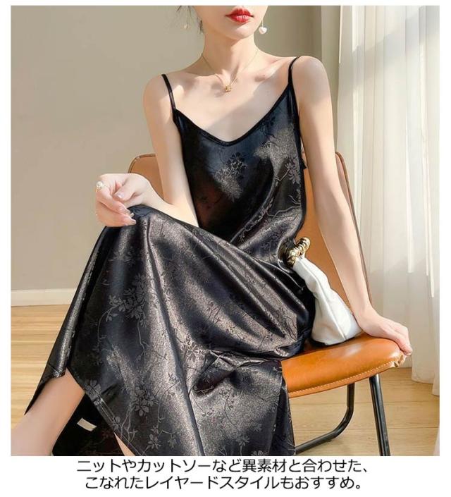 ワンピース キャミワンピ サテン風 送料無料 キャミソール 吊りスカート キャミソール ノースリーブワンピース インナーワンピース ロング Vネック ペチコート インナー セクシー レディース 送料無料 Aライン ノースリーブ 春 夏 着痩せ 重ね着 可愛い