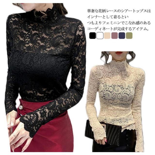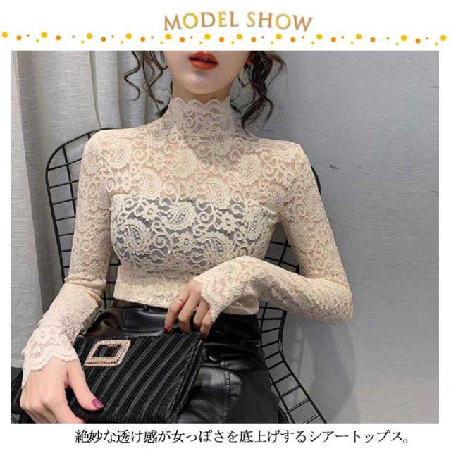 送料無料 シアートップス ハイネック 長袖tシャツ シースルー レディース 長袖 レース インナー 透け感 レイヤード コーデ 重ね着 春夏秋冬 薄手 きれいめ おしゃれ セクシー 大人 20 30 40 50 代