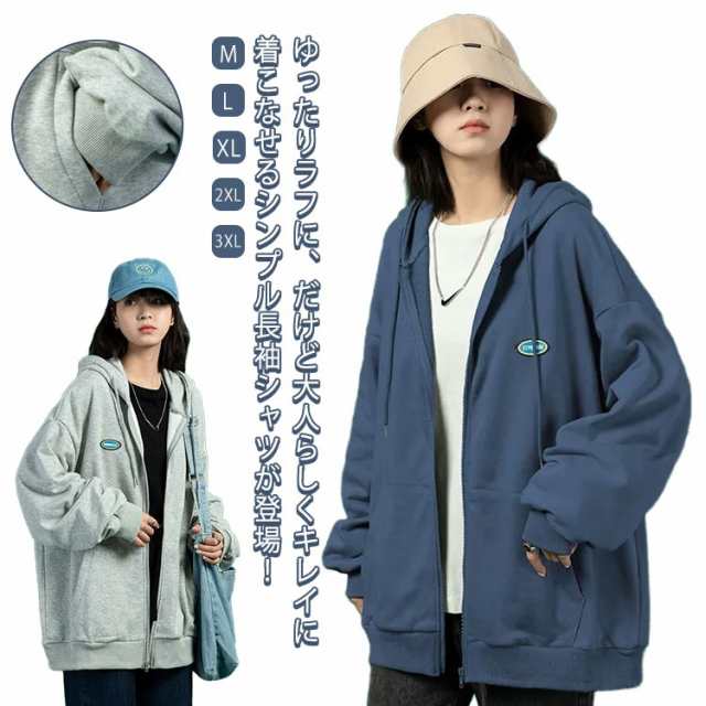 レディース ジップアップ 春 おしゃれ 薄手 スウェット 大きめ パーカー 韓国 長袖 トレーナー 大きいサイズ パーカー フード付き 体型カバー オーバーサイズ ゆったり