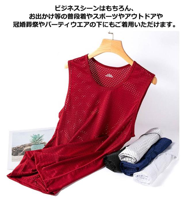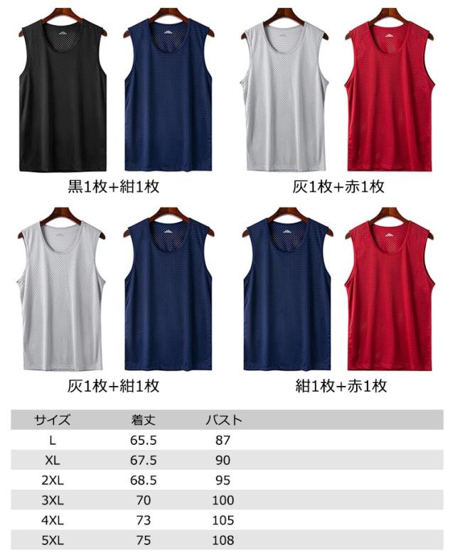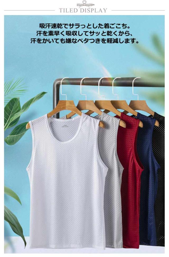 2枚セット メンズ インナー タンクトップ メンズ 大きいサイズ トップス 肌着 肌着 メッシュ インナー 筋トレ トレーニング ノースリーブ 接触冷感 無地 タンクトップ 冷感 トレーニングウェア 黒 白 灰 赤 紺 ブラック ホワイト ネイビー