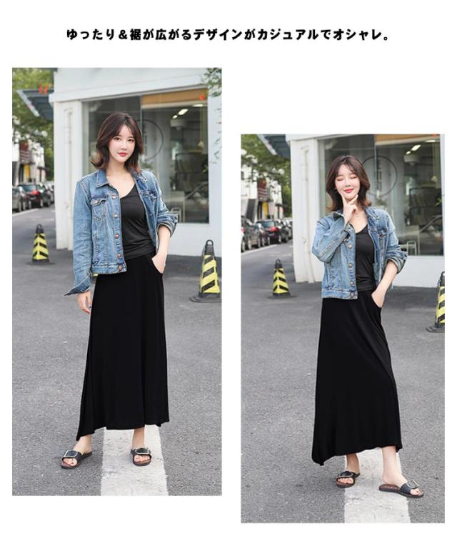 送料無料 マキシスカート レディース ロングスカート ポケット付き 夏 フレア スカート 春 夏 マキシ丈 スウェット Aライン セレブ風 ロング丈 ウエストゴム ハイウエスト おしゃれ シンプル リラックス カジュアル 大人 かわいい