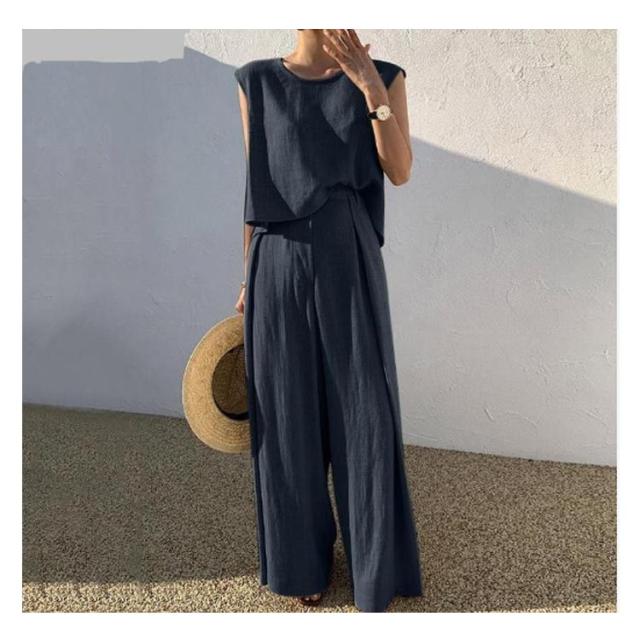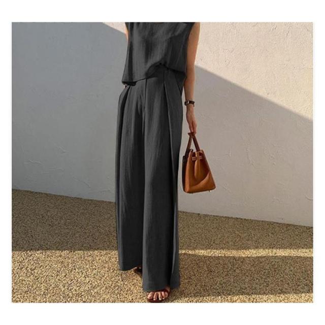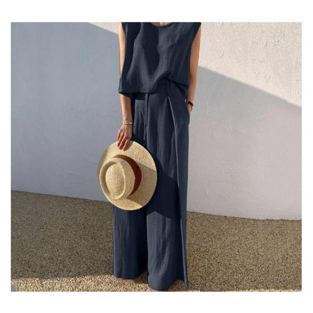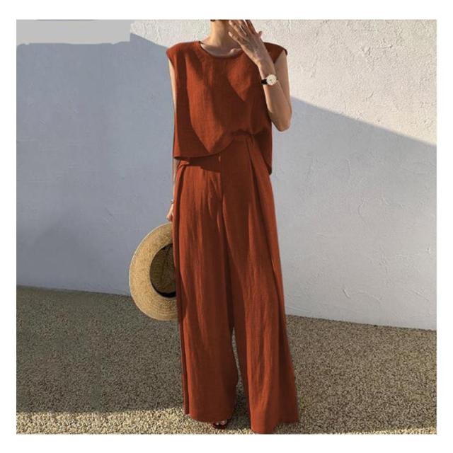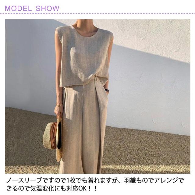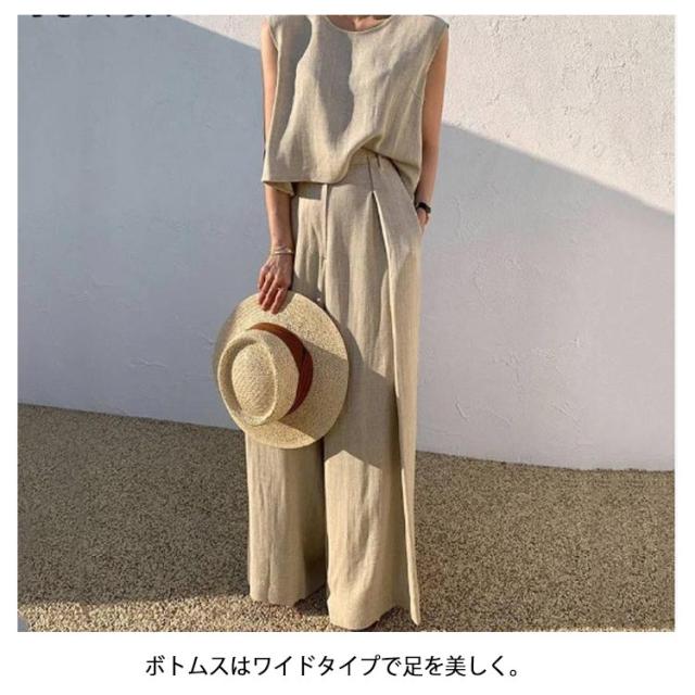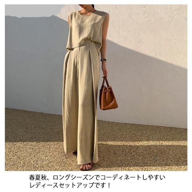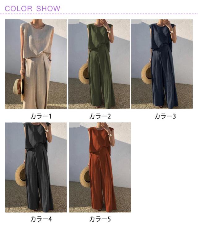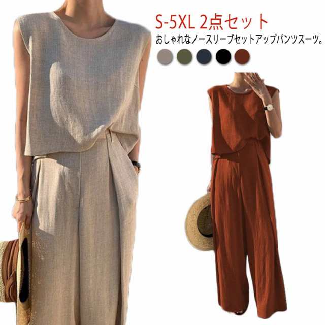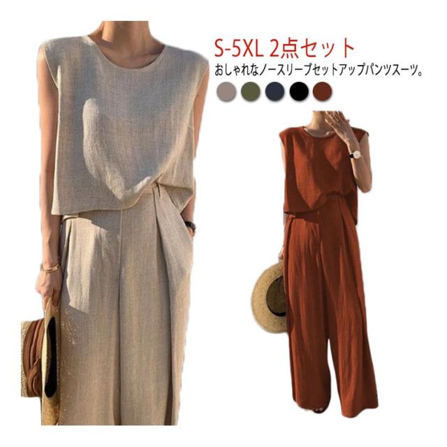 スーツ カジュアル 綿 L 韓国 夏 パンツスーツ ワイドパンツ 上下セット コットン レディース ママ 卒業式 大きいサイズ 2点セット 春夏 普段着 ノースリーブセットアップパンツスーツ 結婚式 セットアップ 卒園式 S M セットアップ XL 2XL 3XL 4XL