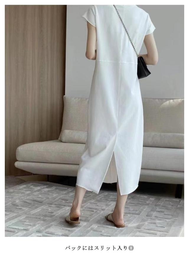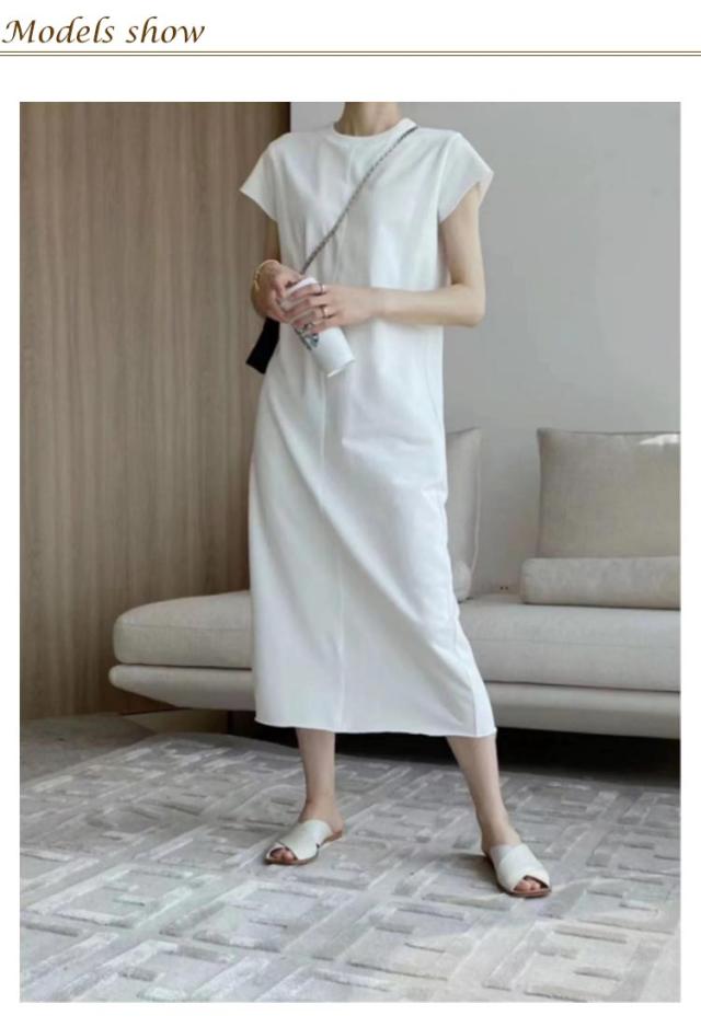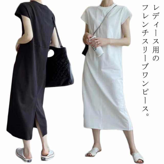 大人 フレンチスリーブ tシャツワンピース 春 カットソー 半袖 tシャツワンピース ディース 夏 無地 Tシャツワンピ ワンピース マキシワンピース カジュアル バックスリット ワンピース