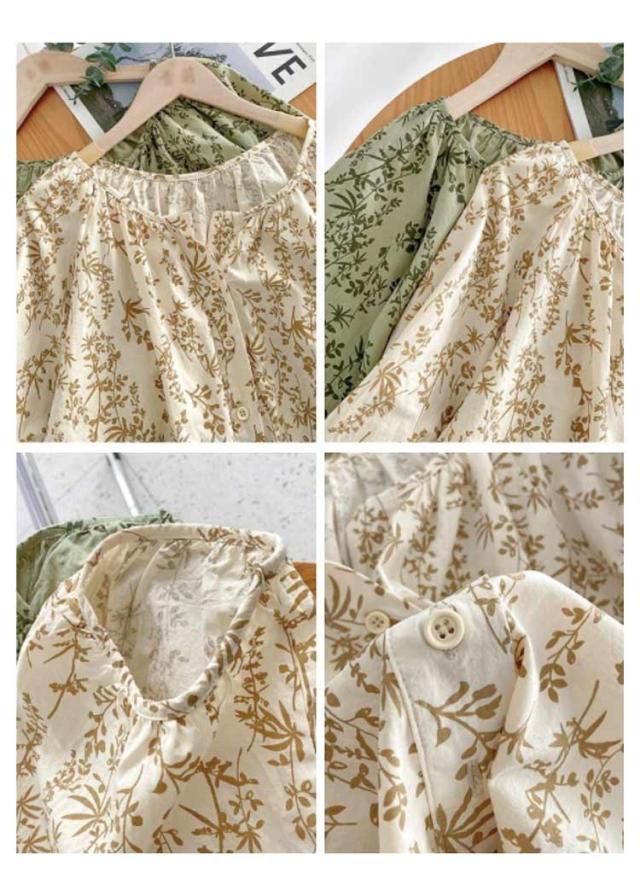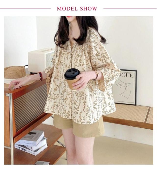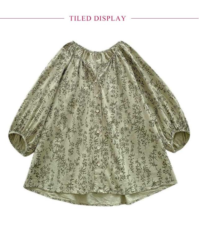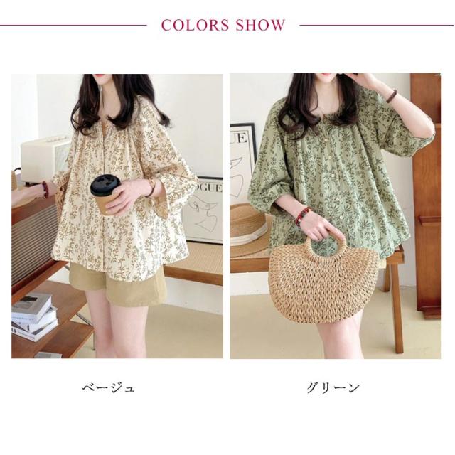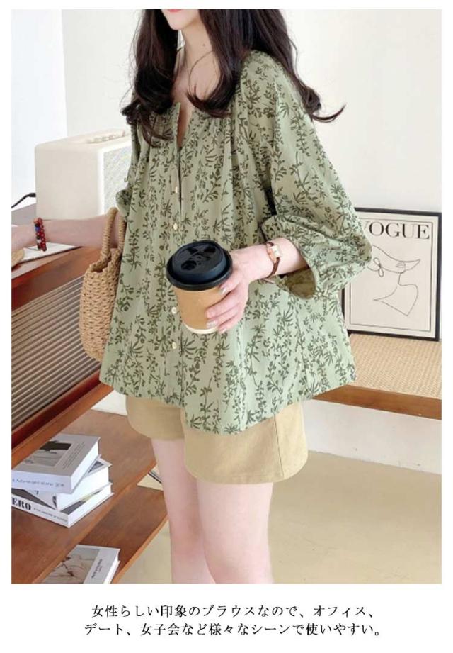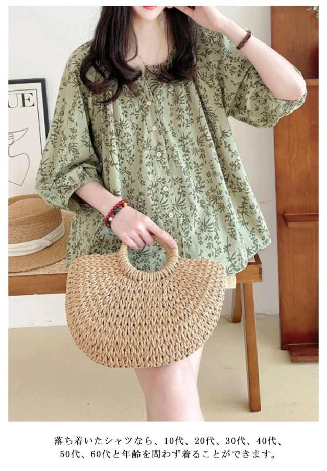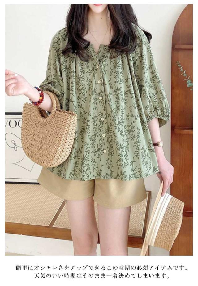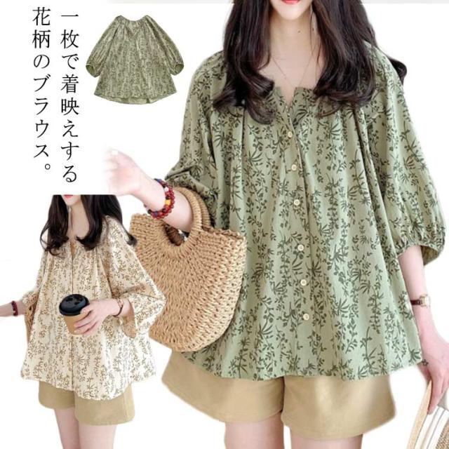 大人 ブラウス ブラウス トップス シャツ 七分袖ブラウス 前開き ボリューム袖 花柄 チュニック 春夏 ゆったり 上品 通勤OL レディース 体型カバー 大きいサイズ 20代 40代 30代
