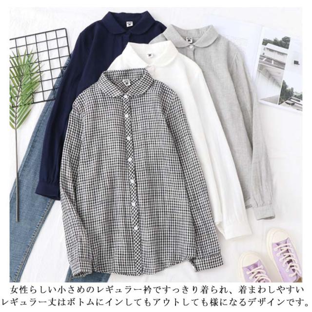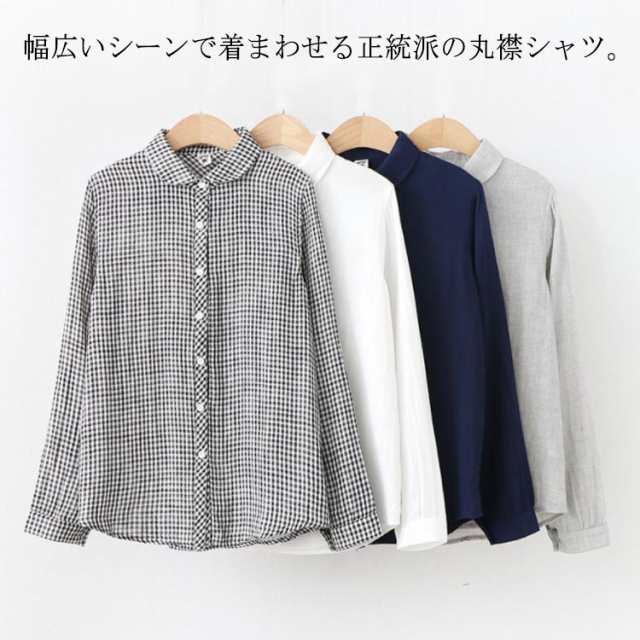 シャツ ブラウス 綿100% レディース 丸襟シャツ 送料無料 ブラウス オフィス ブラウス レディース おしゃれ シャツ 長袖 ブラウス 白 スーツ ビジネス 事務服 制服 ワイシャツ チェック 無地 ゆったり ダブルガーゼ 折り襟 シンプル カジュアル