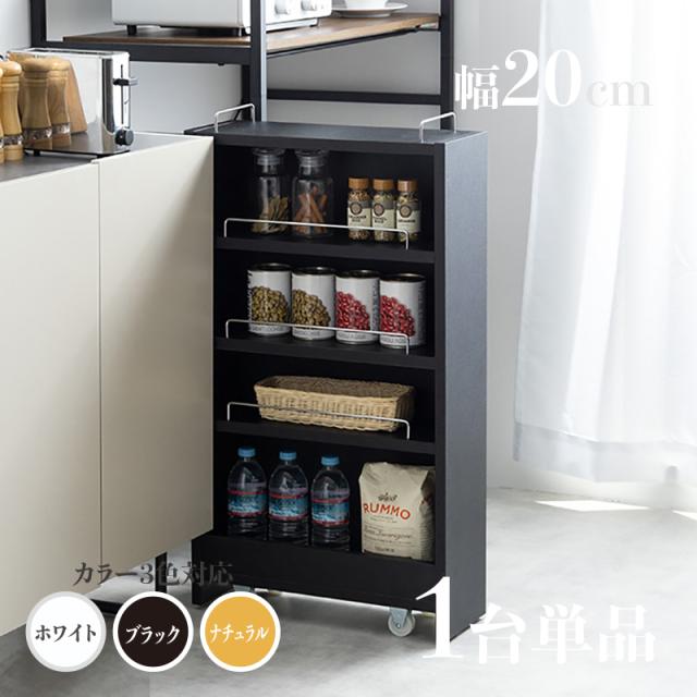 すきま収納 スリムキッチンラック TOM20 1台単品 ランドリー収納 デスクワゴン ナチュラル/ホワイト/ブラック シンクサイドラック 幅20.4cm×奥行45.5cm×高さ84cm 隙間収納ラック 組み立て商品 キッチン収納 ランドリーラック デスクラック キャスター付き