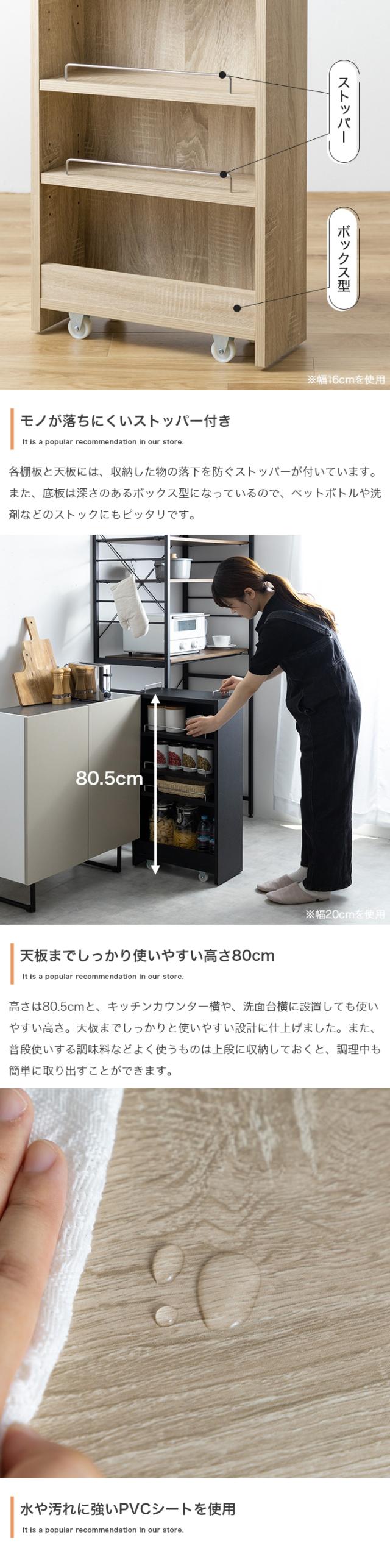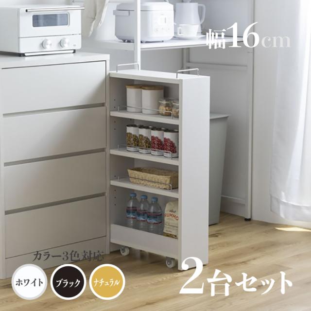 すきま収納 スリムキッチンラック TOM16 2台セットランドリー収納 デスクワゴン ナチュラル/ホワイト/ブラック シンクサイドラック 幅16.4cm×奥行45.5cm×高さ84cm 隙間収納ラック 組み立て商品 キッチン収納 ランドリーラック デスクラック キャスター付き