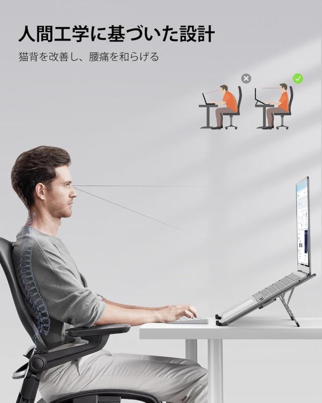 | ラップトップスタンド | 【革新的・極コンパクト】 SODI 314PCスタンドの重さはわずか185g(iPhone 16 Proの重さ:199g)、折りたたみサイズは12.7*4.4*2cmで、スマホよりも小さくなります。手にすっぽり握れるサイズで持ち運びやすい。収納袋も付属しており、カバンに収める際に周囲のものへの傷つける心配もありません。出張や図書館、カフェワークなど様々なシーンで活用できます。 【革新的・スプリング式】 従来のPCスタンドとは異なり、調整アームはスプリング設計を採用しています。1秒で最適な視点に固定でき、グラグラすることもありません。また、さまざまな角度のニーズを満たすために6段階の高さ調整できます。人間工学に基づいた設計で、目線が上に向いて、肩が肘が楽になります。腰痛や猫背のやわらかにも役立ちます。 【放熱効果・安定性抜群】 独特のH字型デザインにより、構造がシンプルで美しい。優れた放熱機能を備えており、長時間の使用でもノートパソコンの過熱を防ぎます。涼しく保ち、パフォーマンスと寿命を向上させます。さらに、本体は100%高品質のアルミ合金で作られており、頑丈で安定性が高い。強くタイピングしても揺らない。ゲームPCでも安定して使えます。 【超滑り止め・快適に使用】 デバイスと接触するすべての領域はシリコン滑り止めパッドでできており、ラップトップを傷つけないだけでなく、滑る危険もなくノートPCをしっかりと固定します。また、スタンドの手前突起部分(ラバー部分)は折り曲げることが可能です。ちょうどいいサイズで出っ張りがなくタイピングの邪魔にならない。様々な形状のデバイスをしっかりと支えることができます。 【対応機種】 Macbook/Macbook Air/ Macbook Proシリーズ/Surface/Surface Proシリーズ/Surface Book/iPad Pro/Sony/HP/Kindle/HUAWEIなど10-16インチのデバイスに対応しております。ipadや液タブを載せるのもよいです。パケージ内容:1*ノートパソコンスタンド、1*ベルベットの収納袋、1*日本語取扱説明書。 |