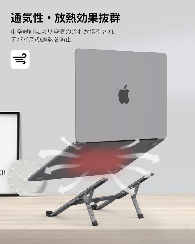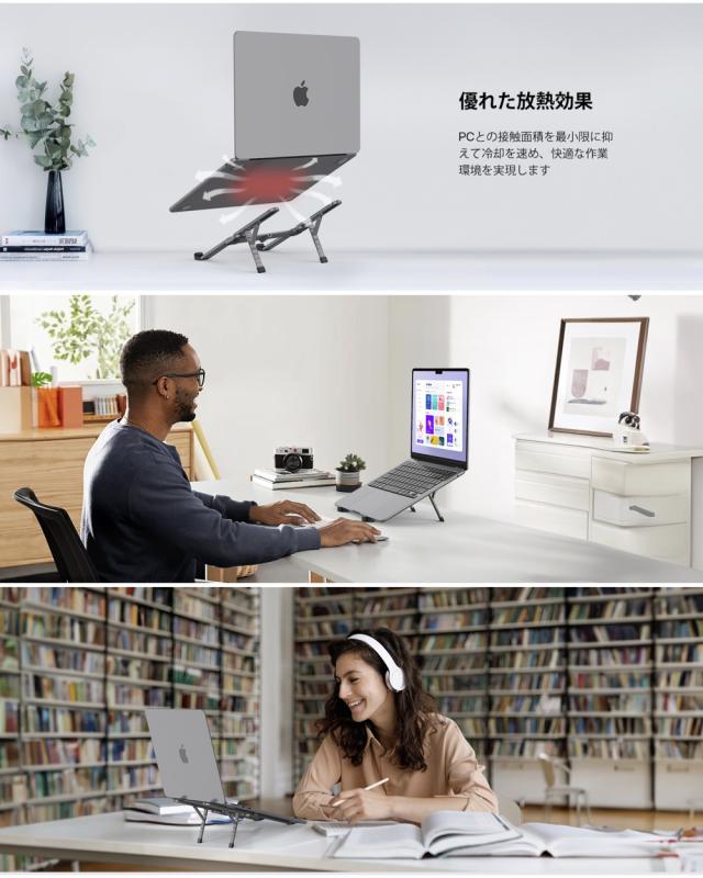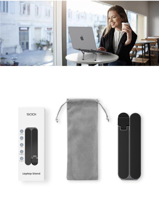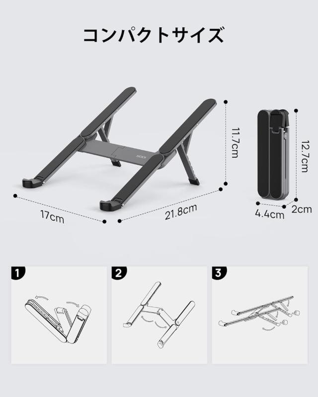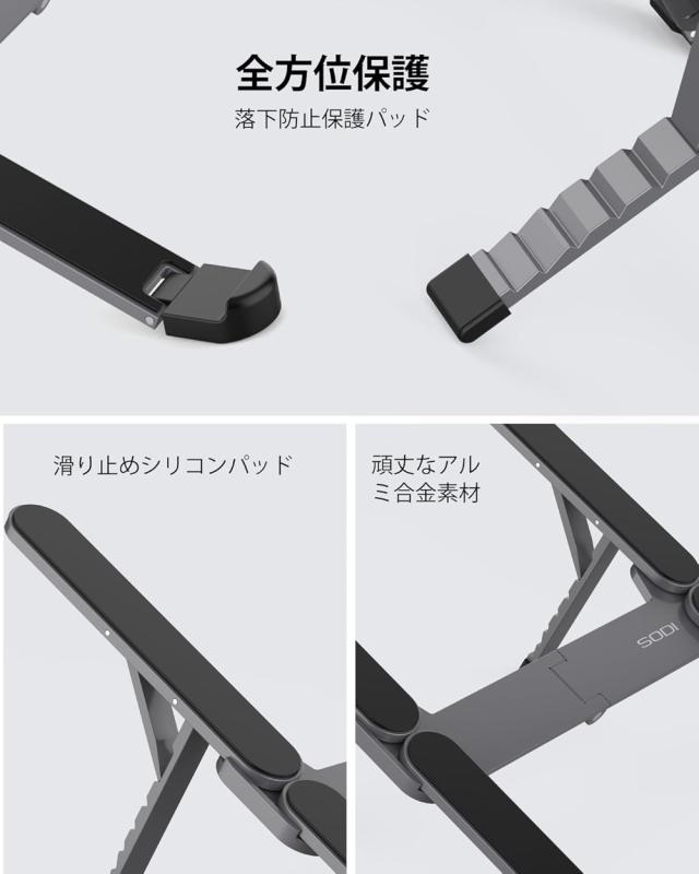 【革新的・極コンパクト】 SODI ノートパソコンスタンド PCスタンド 折りたたみ式 ノートPC 安定感 超軽量 角度調整 腰痛 猫背 姿勢改善 おしゃれ laptop stand パソコン台 卓上 持ち運び 外出 自宅 10-16インチ 収納ポーチ 日本語取扱説明書