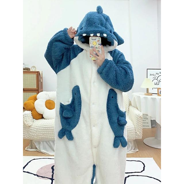 着ぐるみ パジャマ サメ 大人用 もこもこ ルームウェア 可愛い 着る毛布 動物 冬物 修学旅行 中学生女子 高校生 もこもこ パジャマ ワンピース レディース 秋 寝巻き 韓国 部屋着 長袖 暖かい 防寒 お揃い フード付き 動物 クリスマスプレゼント イベント 学園祭 女子会
