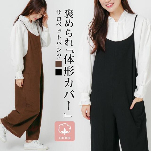 サロペット レディース 春 夏 春夏 黒 オールインワン キャミソール サロペット オーバーオール ワイドパンツ 無地 ブラック ブラウン 20代 30代 送料無料