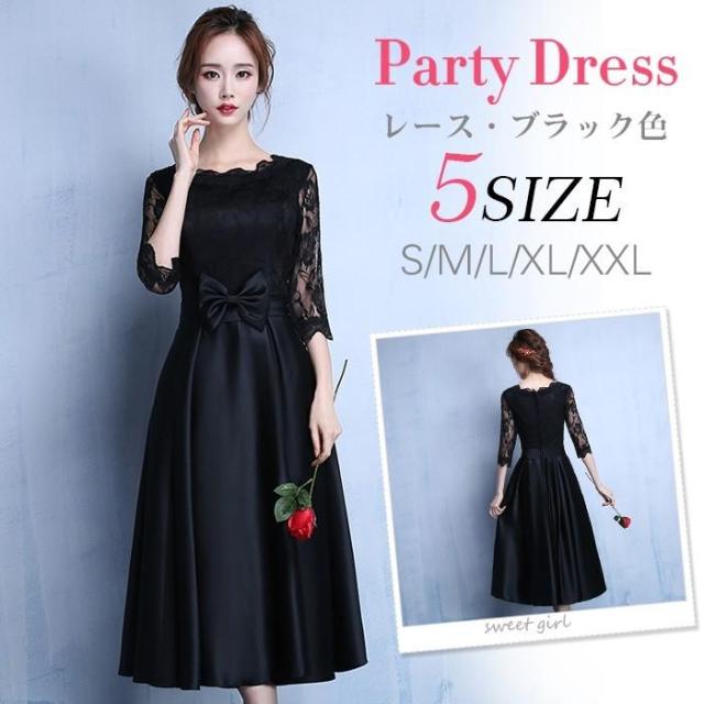 即納 パーティードレス 結婚式 ドレス 袖あり 二次会 ドレス ウェディングドレス ミモレ丈 二次会ドレス 花嫁 パーティドレス 披露宴 お呼ばれドレス 黒ドレス