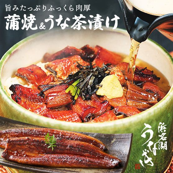 希少価値の高い厳選した浜松・浜名湖ブランドこだわりの身質の良いうなぎを使用。タレ作りから焼きに至るまで丹誠込めて作りました。ご好評の蒲焼2人前と、うな茶漬け2人前のセット。