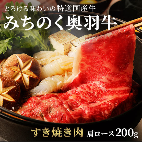 特選国産牛 みちのく奥羽牛 すきやき肉 牛肩ロース 200g 牛すき焼き肉 すき焼肉 すきやきにく すき焼き用牛肉 すきやき牛 ブランド牛肉 高級肉 高級牛肉 冷凍牛肉 国産牛肉 自宅用 国産和牛 お祝い返し