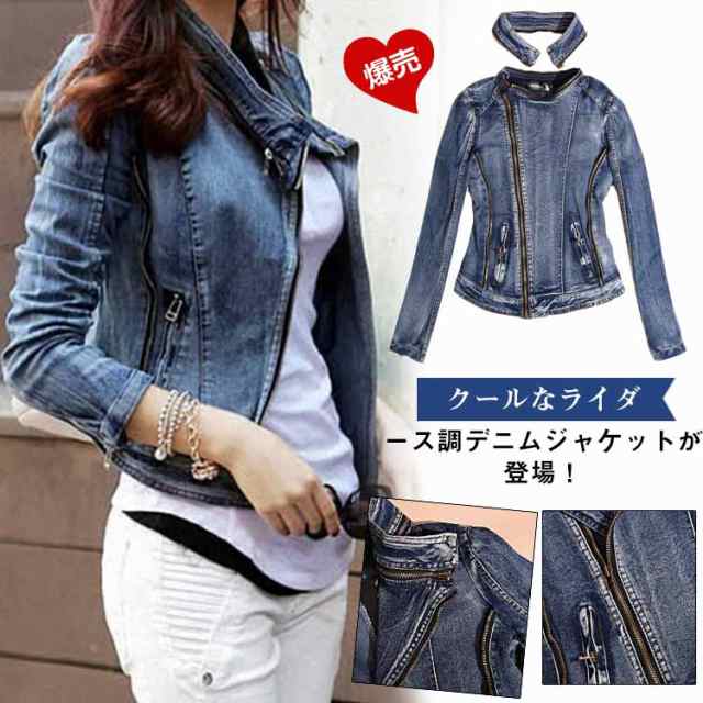 ライダース調デニムジャケット ジージャン ライダースジャケット デニムジャケット Gジャン ショート丈 襟取り出し可能 トップス