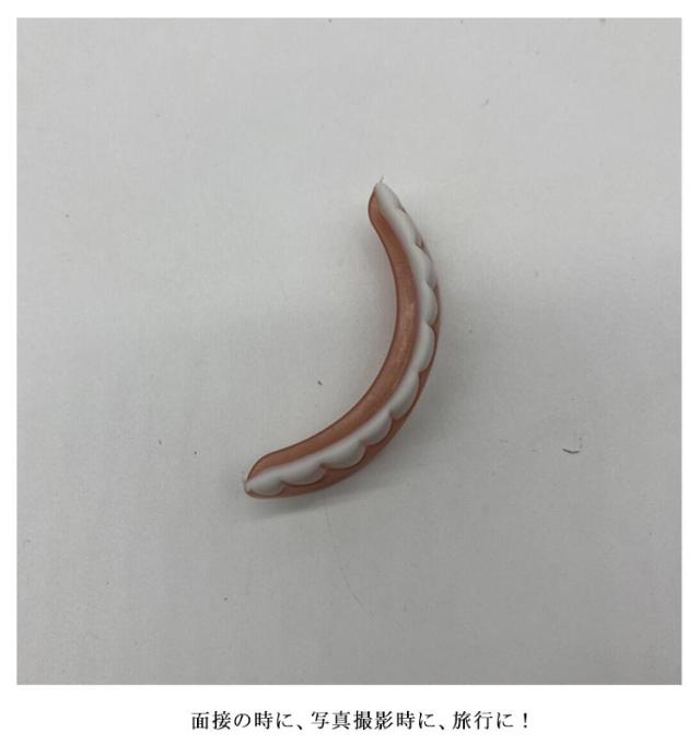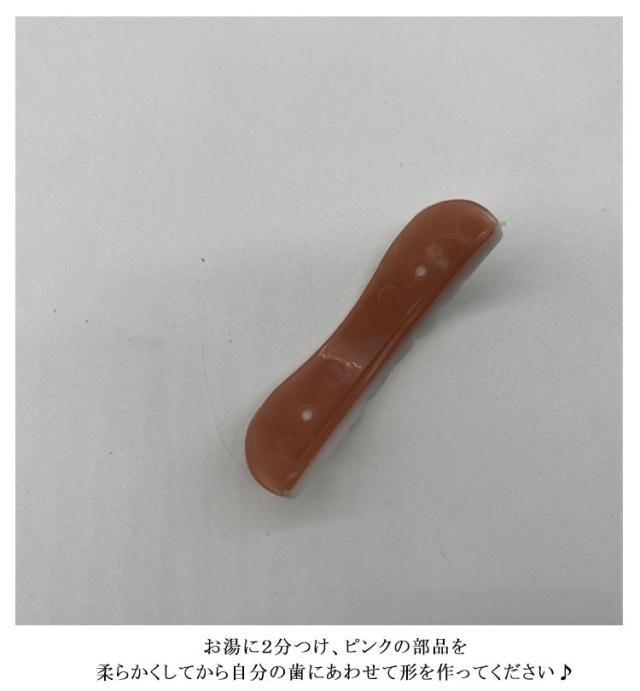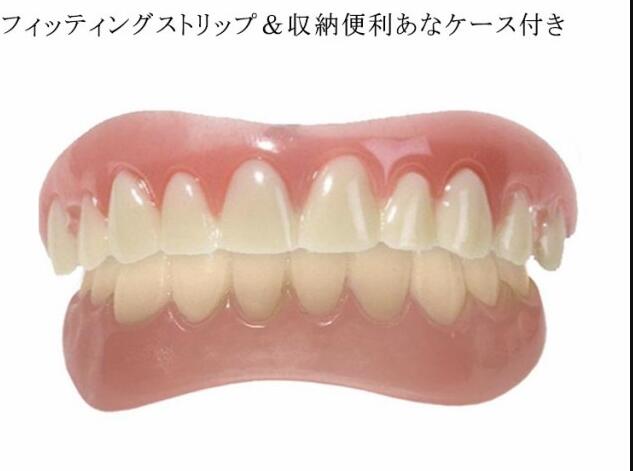 | 上歯/下歯セット! フィッティングストリップ&収納便利あなケース付き 脱着はワンタッチで行えますのでいつでもどこでも気軽に使用出来ます。 本体をお湯で柔らかくしてご自身の歯のカーブに合わせてフィッティング後、冷え固めます。 面接の時に、写真撮影時に、旅行に! お湯に2分つけ、ピンクの部品を柔らかくしてから自分の歯にあわせて形を作ってください♪ ピンクの部品が歯につけるときの取り外しできるゴムです☆ 薄く入れ歯の内側につけ歯に付けます。 そのゴムが自分の歯の隙間などに入り固定できます☆ うまくつかない場合は、市販されている歯接着剤をお使い下さい(^-^) 入れ歯ではありませんのでご注意ください! これを付けて食べ物を食べることは辞められた方がいいかと思います。 | |