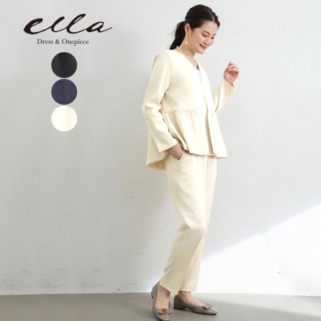 セットアップ レディース セレモニースーツ パンツスーツ ジャケット パンツドレス パーティードレス ノーカラージャケット ドレス パンツ スーツ ウエスト ゴム入り 長袖 結婚式 謝恩会 発表会 かっこいい きれいめ ゆったり 抜け感 大人 ママ フォーマル オールシーズン 大きいサイズ エレガント 上品 ビジネス オフィス 二次会 母 卒業式 入学式 入園式 演奏会 同窓会 おしゃれスーツ カジュアル 春 袖あり 上下 美脚効果 ペプラムデザイン ブラック 黒 ネイビー 紺 オフホワイト 白 灰 20代 30代 40代 50代 M L XL 9号 11号 13号 rt7632