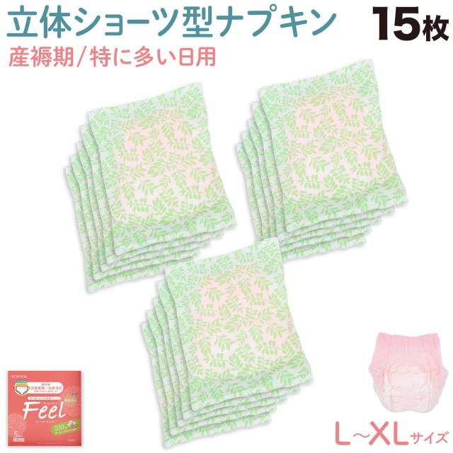 女性用 ECO 産褥ショーツ型ナプキン フィールオーガニック L-XLサイズ 15個【送料無料】 多い日用 夜用 防災 使い捨て ショーツ型 15枚