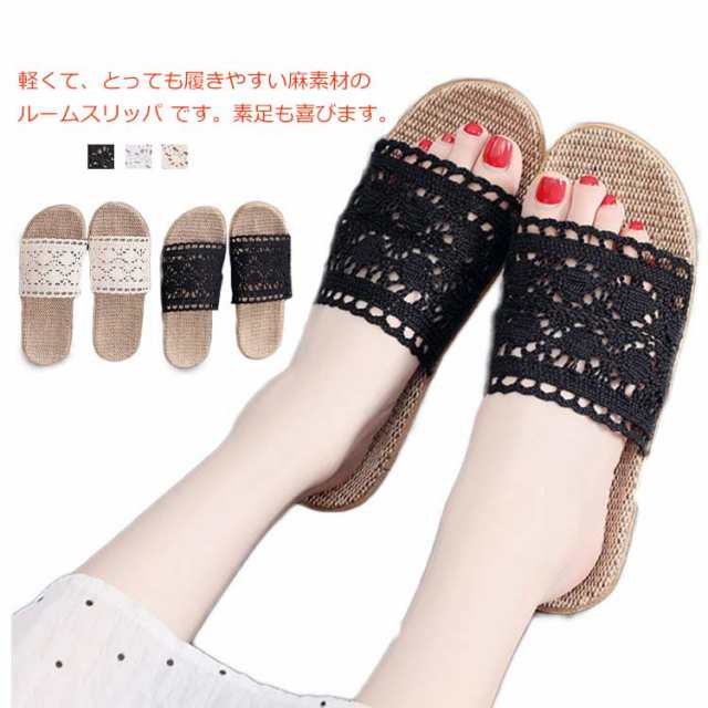 スリッパ 麻 春 夏 レース 刺繍 室内履き 和風 レディース リネン スリッパ かぎ針編み レース ルームシューズ 女性 屋内 滑り止め サンダル 部屋用 ギフト ママの日 お洒落 かわいい 送料無料