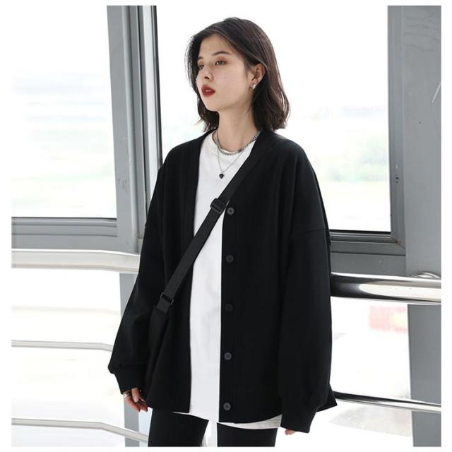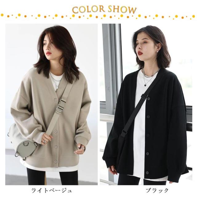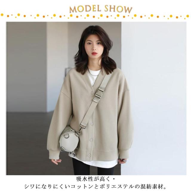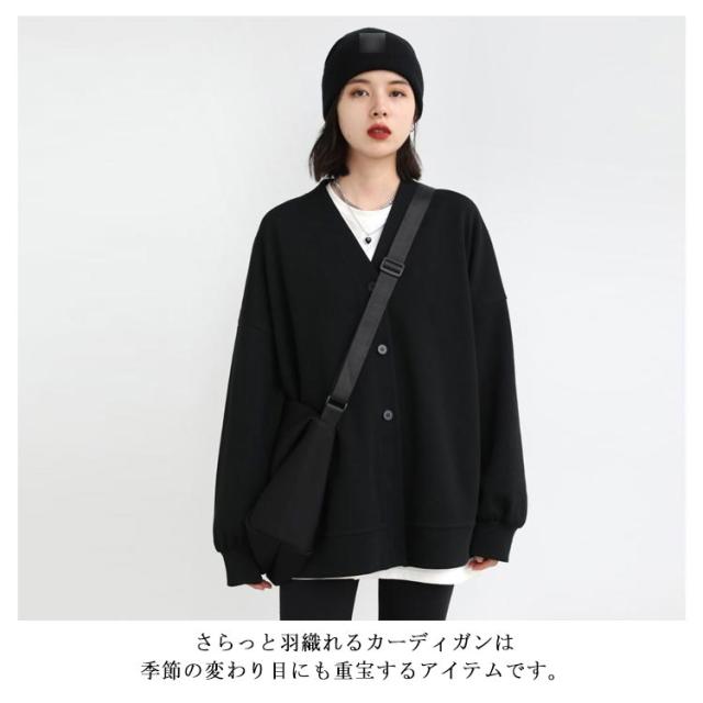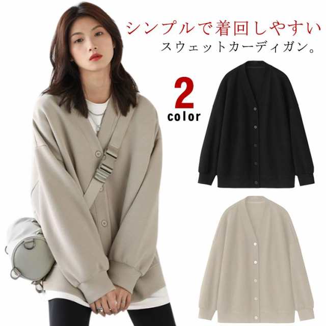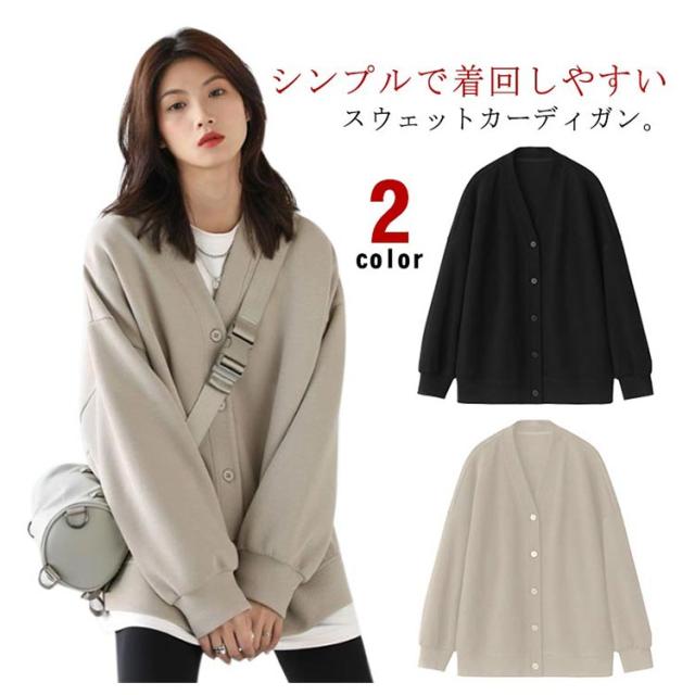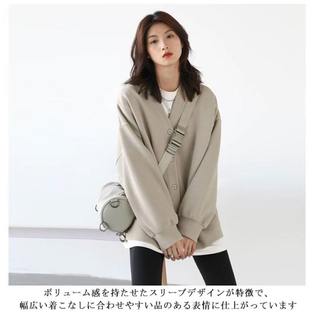 スウェット 長袖 カーディガン スウェットカーディガン 冬 vネック カーデ トップス アウター 羽織り レディース スウェットカーディガン ボリューム袖 パフ袖 ゆったり ボタン 無地 スエットカーディガン 大人カジュアル スクールカーディガン 学生