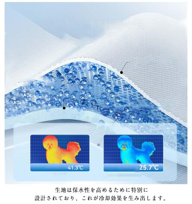 | ・暑い夏にひんやり涼しく過ごせるクールベスト ・水に濡らして絞り、子犬に着せるだけで、蒸発を利用して犬の体温を下げることができます。 ・生地は保水性を高めるために特別に設計されており、これが冷却効果を生み出します。 ・冷蔵庫に入れておくとさらに冷感アップ◎ ・通気性の良い柔らかなメッシュ素材を使用し、体にぴったりフィット! ・メッシュの層が空気を循環させ、日光を遮って、UVカットと遮光効果を高めます。 | |