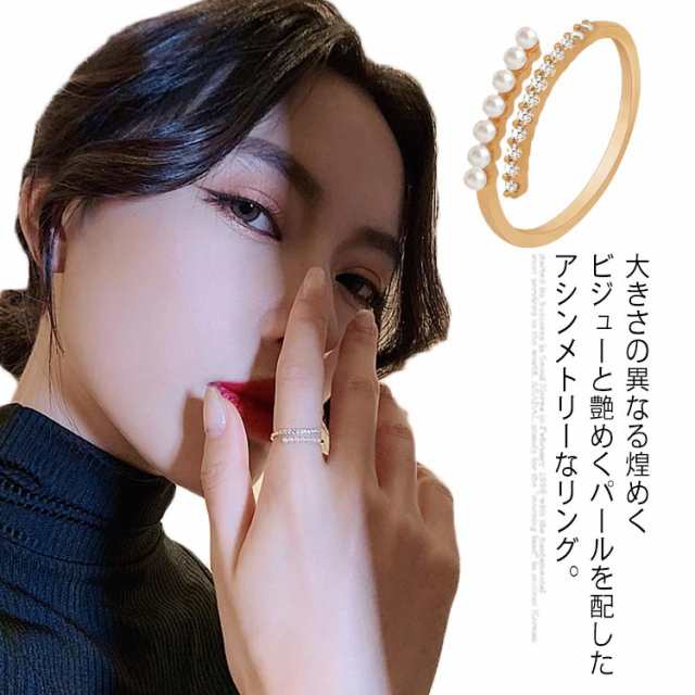 | 大きさの異なる煌めくビジューと艶めくパールを配したアシンメトリーなリング。戒指 華やかなデザインと華奢なフォルムが大人な手元を演出してくれます。奢? ピンキーリングとしてポイント使いにもオススメです。 ?口??可?? どんなリングとも相性抜群で使いやすく、細身ながら手元を華やかに演出する。?? | |