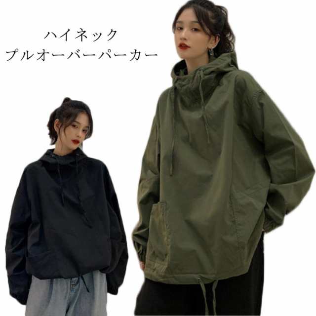 プルパーカー フード付き ハイネック レディース 春夏 ハイネック 長袖 オーバーサイズ 体型カバー ビッグシルエット 送料無料 トップス パーカ 無地 ユニセックス ボリュームネック パーカー ゆったり 大きいサイズ 大人 カジュアル 春服 夏服 ストリート系 パーカー