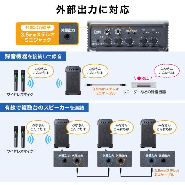 ●外部音声出力を搭載しており、外部機器への録音や、本製品複数台をカスケード接続することで複数台のスピーカーから同時に拡声出力することも可能です。