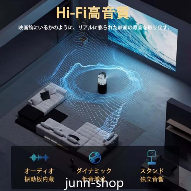 プロジェクターは最新2.4Gまたは超高速5G WiFi接続を搭載し、ケーブル不要、wifi経由でIOS、AndroidおよびWindowsデバイスにすばやく接続でき、ワイヤレス投影模式に入ります。2.4G+5Gの周波数帯を同時利用でき、遅延が 60% 削減されて、安定した信号と高速伝送速度を実現! Wi-Fi環境が無くても、プロジェクターはUSBケーブル/HDMIアダプターでの有線接続もできます。操作が簡単で、接続が速いです。Bluetooth4.0を搭載し、ワイヤレスでご愛用なBluetoothヘッドホンまたはスピーカーにも瞬時的に接続できます。高音質HIFIスピーカ—も内蔵され、外部スピーカーを用意する必要なく、立体的で臨場感に満ちた音場を忠実に再現し、お家で気楽に映画雰囲気を味わえる!