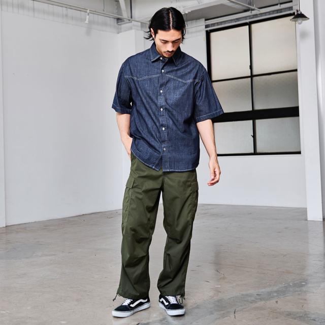 同シリーズの「CavariA ルーズシルエットデニムショーツ」とセットアップでの着用も可能です。