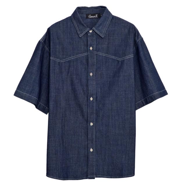 シャツ メンズ ブランド おしゃれ 半袖 半袖シャツ デニムシャツ ダンガリーシャツ シャンブレーシャツ 大きいサイズ 大人 アメカジ カジュアルシャツ ブルー インディゴ 父の日 CavariA 20代 30代 40代 ユニセックス 男性 男 服 春 夏 夏服 春夏 ファッション [CARE25-32]