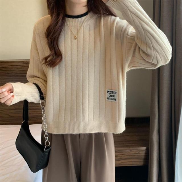 セーター レディース セーター ニット 長袖 丸首 ショート上着 学生 通学 ワンポイント アンダーウェア 秋冬春 衣装 外出 かわいい女子トップス