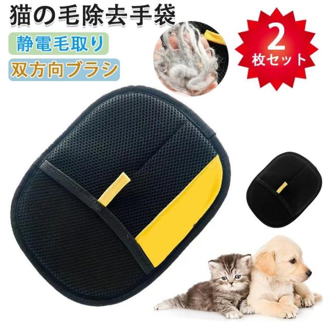 2個セット 猫の毛除去手袋 猫 抜け毛グローブ ペット らくらくブラシ 手袋 ペット用 静電毛取り手袋 猫の毛除去手袋 通気性UP 猫用ペット ブラシグローブ 抜け毛