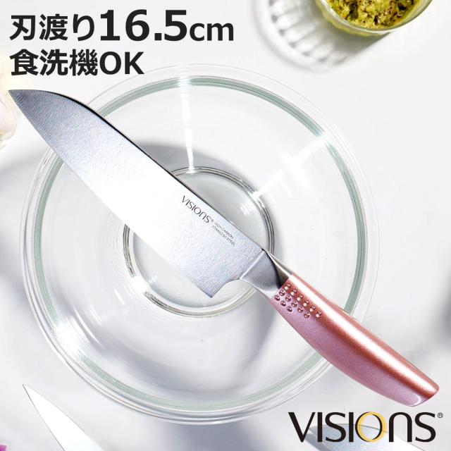 三徳包丁 16.5cm VISIONS 食洗機対応 ( 料理包丁 万能包丁 キッチンナイフ 文化包丁 オールステンレス 16.5センチ 錆びにくい 切れ味抜群 調理小物 調理道具 一体型 下ごしらえ用品 ピンク おしゃれ ビジョン )