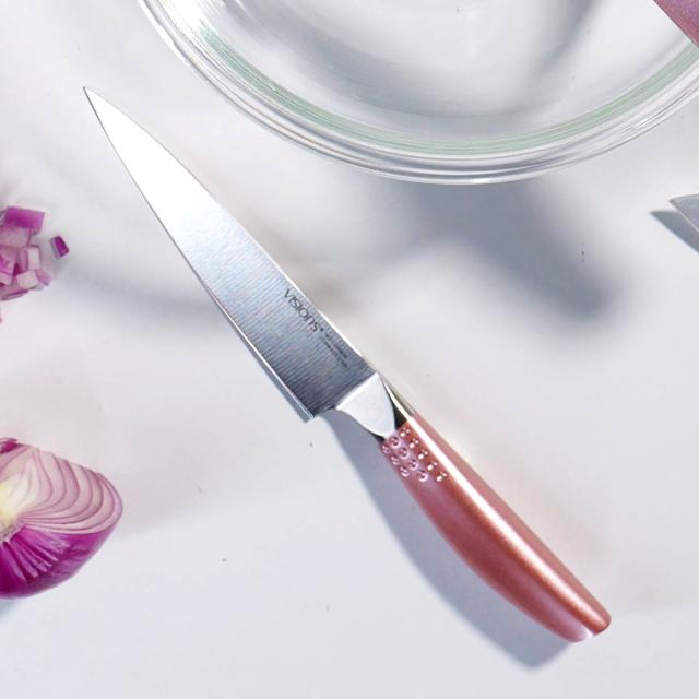 ペティナイフ 12.5cm VISIONS 食洗機対応 ( 果物包丁 果物ナイフ 小型包丁 洋包丁 ナイフ オールステンレス 12.5センチ 錆びにくい 切れ味抜群 調理小物 調理道具 下ごしらえ用品 ピンク おしゃれ ビジョン )
