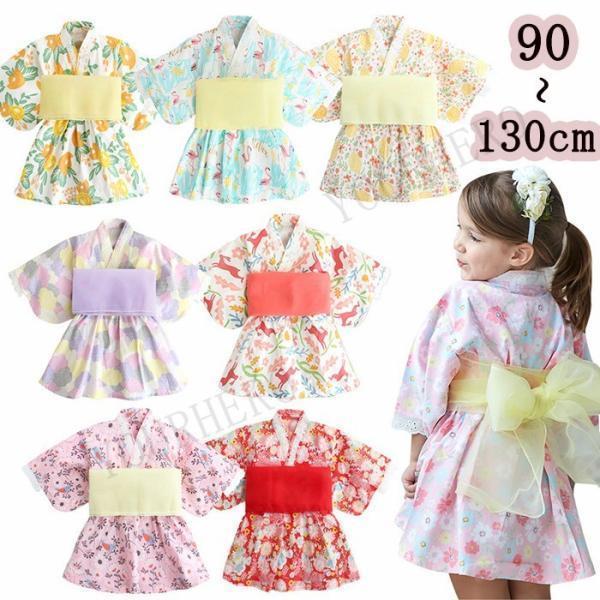 浴衣 子供 女の子 ワンピース 帯 女の子 かわいい レトロ キッズ 浴衣 子ども 浴衣ドレス 兵児帯付 甚平ベビー服 長袖 チュニック子供 花柄