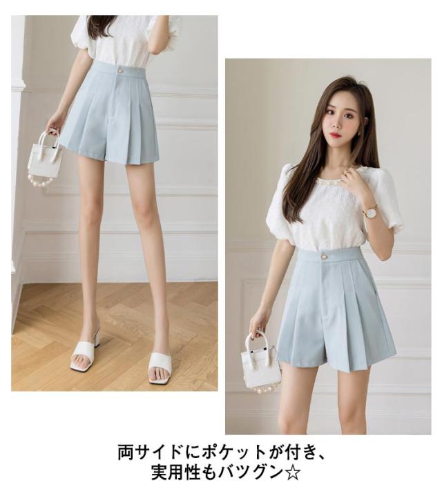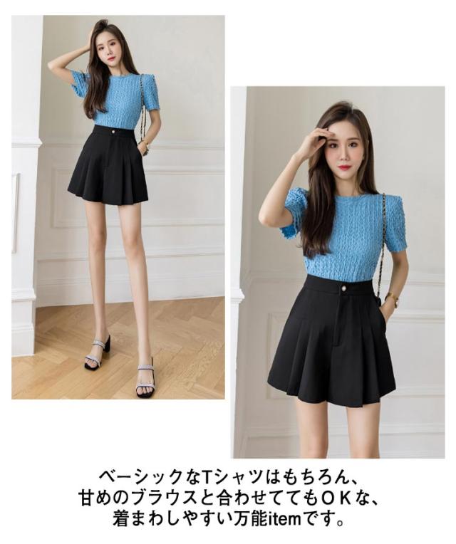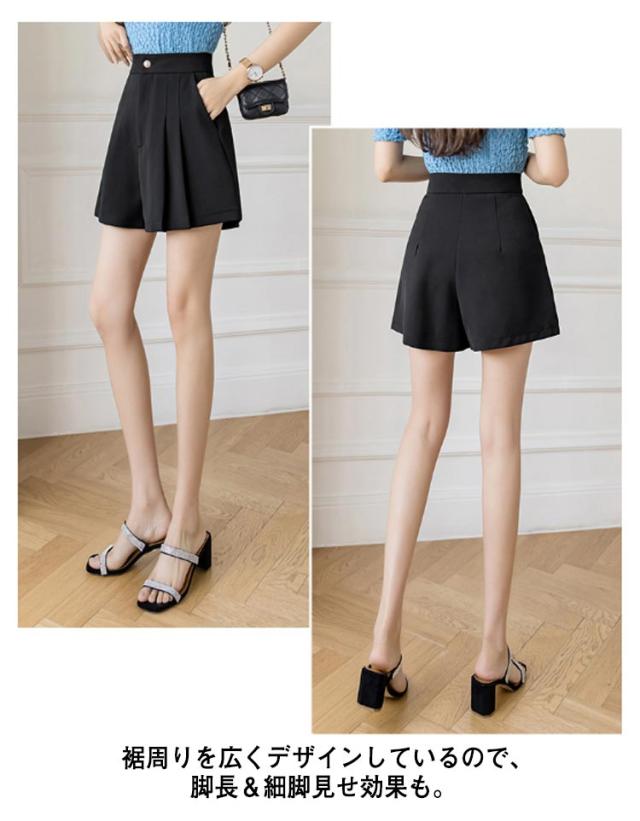 フレア ワイドパンツ 夏 ワイドショートパンツ パンツ ショートパンツ プリーツ とろみ ワイドシルエット タック 送料無料 ボトムス ゆる 膝上 キュロットパンツ ハーフパンツ 薄手 ショート丈 シワになりにくい シンプル カジュアル 通気性 レディース