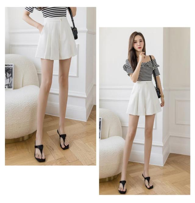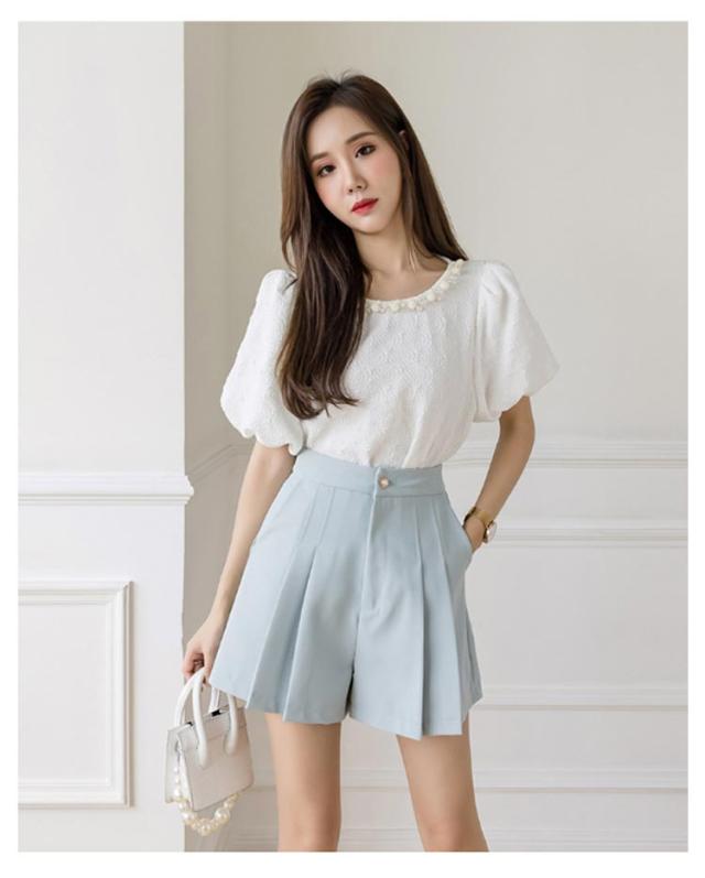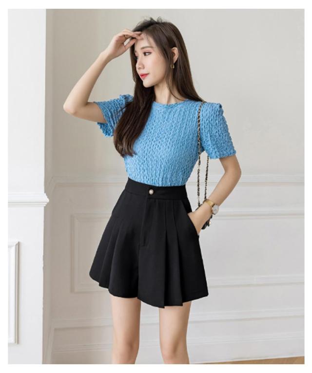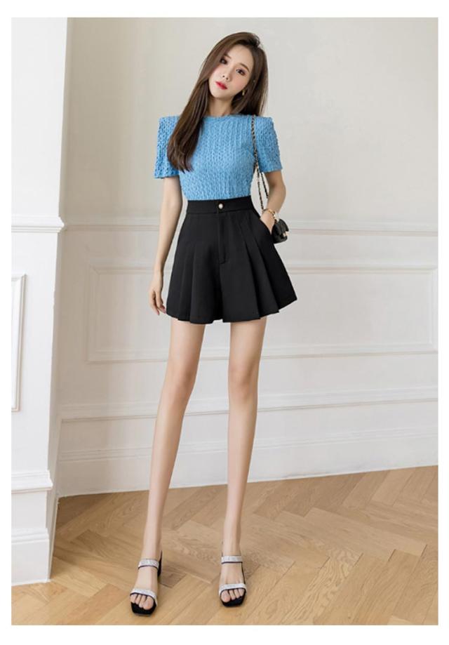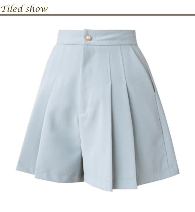 | 大人の品格を添えるワイドショートパンツの登場です。 とろみある上品な生地、シワになりにくいからお手入れ簡単♪ シンプルながらもフレアシルエットやハイウエスト、絶妙な丈感で美脚・脚長効果を発揮。 ハイウエストパンツなので、トップスはインしたスタイリングがイチオシです。 楽に着られるフレアシルエットに、シーズンレスで着回し が楽しめる。 | |