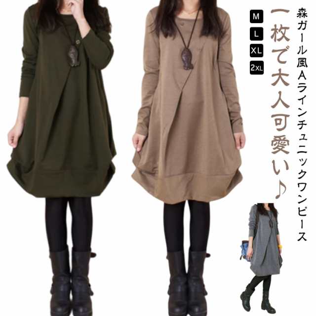 冬 50代 秋 秋冬 ひざ丈 レディース 大人可愛い 30代 チュニックワンピース 40代 森ガール チュニック 膝丈 チュニック 長袖 大きいサイズ 無地 ロング ワンピース ブラック 黒 グレー 緑 グリーン 茶色 ブラウン 春 ゆったり ミディ丈 レトロ