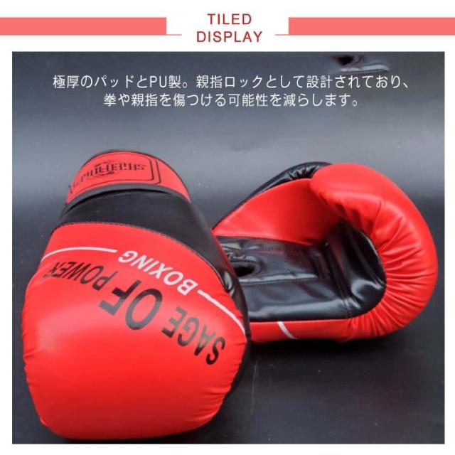 | 【セット内容】 極厚のパッドとPU製。親指ロックとして設計されており、拳や親指を傷つける可能性を減らします。 子供用と大人用ボクシングの5点セットです。 テープ式で簡単に着脱でき、サイズ調整でしっかりと固定できます。 通気性良く、発汗を促し蒸れない構造となってます。 ダイエット、運動不足解消、ストレス解消の健康のための運動にも使えます。 ボクシング、空手、などの格闘技のパンチ、突き練習用等に最適です。 | |