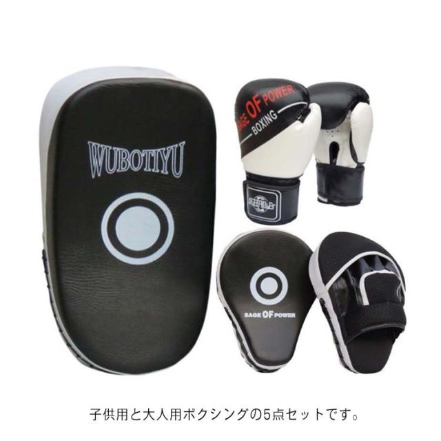 キックボクシングパッド ボクシンググローブ 5点セット 子供用 ボクシング 大人用 パンチングミット 空手 ボクシング ミット テコンドー ボクサー 武術 格闘技 親子 キッズ パンチング 練習用