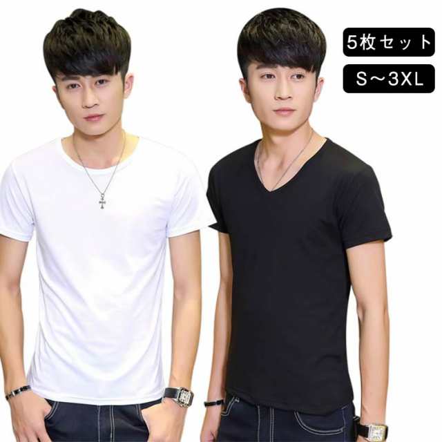 5枚セット 下着 Vネック クルーネック Uネック インナーシャツ V首 半袖 男性用 Tシャツ 丸首 大きいサイズ 紳士 アンダーシャツ 肌着 コットン メンズ 白 黒 無地 定番 シンプル オフィス