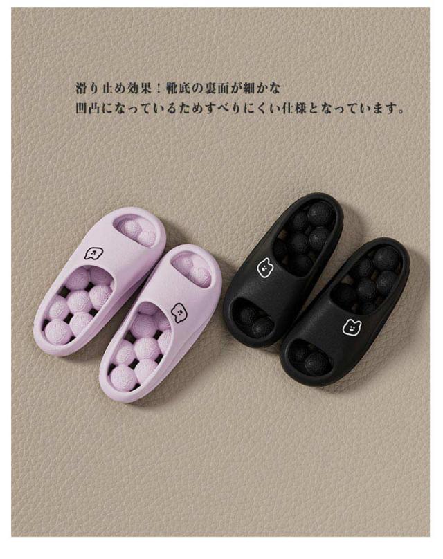 | 健康サンダル!クッション性がある丸いボールがやさしく足裏をマッサージし血行を促進します。 ソールに穴が空いてるので水はけがよく乾きやすいです。 適度に柔らかいEVA素材のため、長時間の着用も快適です。 大き目の丸いボールが優しくじんわりと足裏の反射区を刺激し内臓機能、血流を改善します。 厚底があるので、長時間立っても疲労感なし、さらにクッションもすぐれたスリッパです。また弾力性があり履き心地が良いです。 滑り止め効果!靴底の裏面が細かな凹凸になっているためすべりにくい仕様となっています。 通気性が良いため排水と防臭効果に優れています。 底面は滑り止め加工を施しているため、 ベランダ・トイレ・浴室などの濡れた地面でも滑ることなく使用できます。 足ツボサンダル、シャワーサンダル、ベランダサンダル、ビーチサンダル、トイレ用など様々なシーンでお使いいただけます。 | |