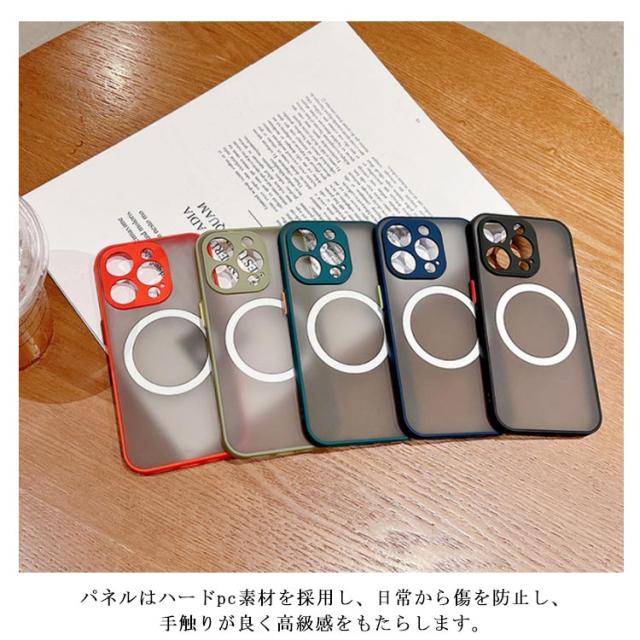 | 背面はマット仕上げの半透明デザイン パネルはハードpc素材を採用し、日常から傷を防止し、手触りが良く高級感をもたらします。 高品質なtpu素材なので耐摩耗性の向上、色落ちも防げます。 ケースを装着した状態でのワイヤレス充電(Qi充電)とMagSafe充電に対応しています。 ケースを装着したままで、カメラ機能や充電コネクターの接続、タッチパネル操作が可能です。また各種ボタンの操作も使用可能です。 カメラ部分は浮き上がってフルカバーします、カメラレンズを保護する役割を担います。 | |
