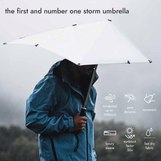 | senz° storm umbrellas 「嵐の傘」となずけられたこの傘の最大の特徴は点対称ではない展開時の傘の形です。 インターナショナルデザインアワード受賞。 そのユニークなデザインは空力学的な合理性から設計されています。 高い耐風性を誇る独自の非対称形状が風をスムーズに切り抜け、強風の中でも片手で楽に持ち運べ裏返るなどのトラブルを防ぎます。 そしてなにより合理的なデザインは美しいものです。 貴方がおもむろに取り出した傘がこの洗練された製品であれば一味違った印象を与えることができます。 senz° original 唯一無二の存在 senz°の原点とも言える、象徴的なストームアンブレラ。senz° originalは前方からの風を効果的に切り、漂うように展開します。だからこそ、強風の中でも片手で楽に持ち運ぶことが可能です。究極の耐風傘は、スタイルと革新性を完璧に融合させた逸品です。 ・アイコニックモデル。 ・時速100km以上でも、常に最適な耐風性を発揮。 ・ショルダーストラップ付きの高級スリーブで快適に持ち運び可能。 ・強化ファイバーグラス製の傘骨 |