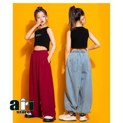 キッズ ダンス 衣装 デニム パンツ ジーンズ 練習着 ゆったり ダボダボズボン ジーパン 子供 子供服 男の子 女の子 ヒップホップ hiphop