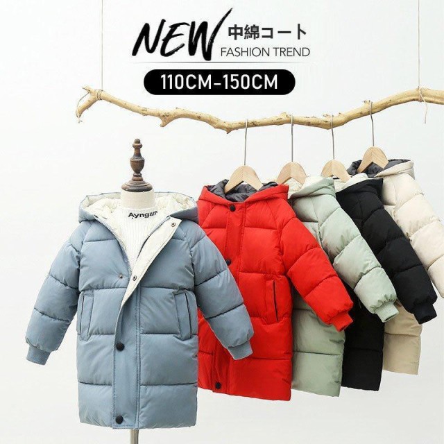 中綿コート キッズ 韓国子供服 男の子 女の子 防寒 冬服 子供コート アウター 厚手 ダウン風コート チュニック丈 ロングコート 中綿ジャケット フード付き