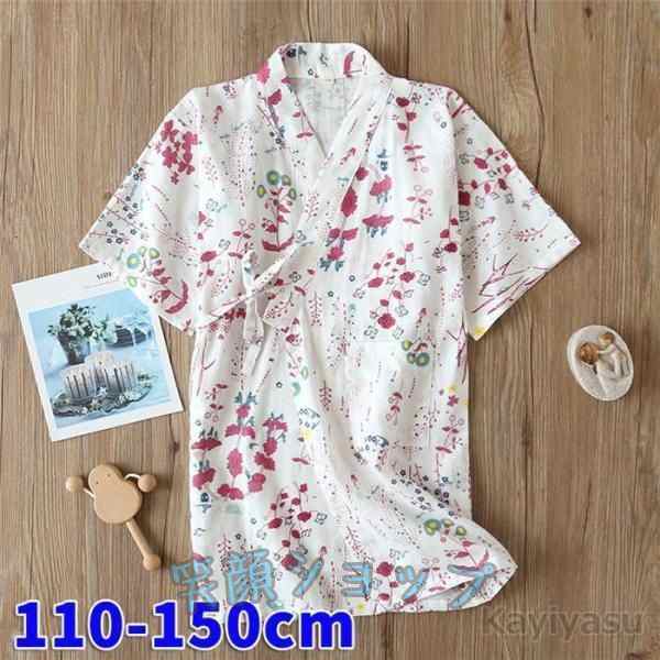 甚平パジャマ子供ルームウェア半袖キッズトップスVネック前開き寝巻き寝巻お風呂肌触りよい七五三花柄可愛い